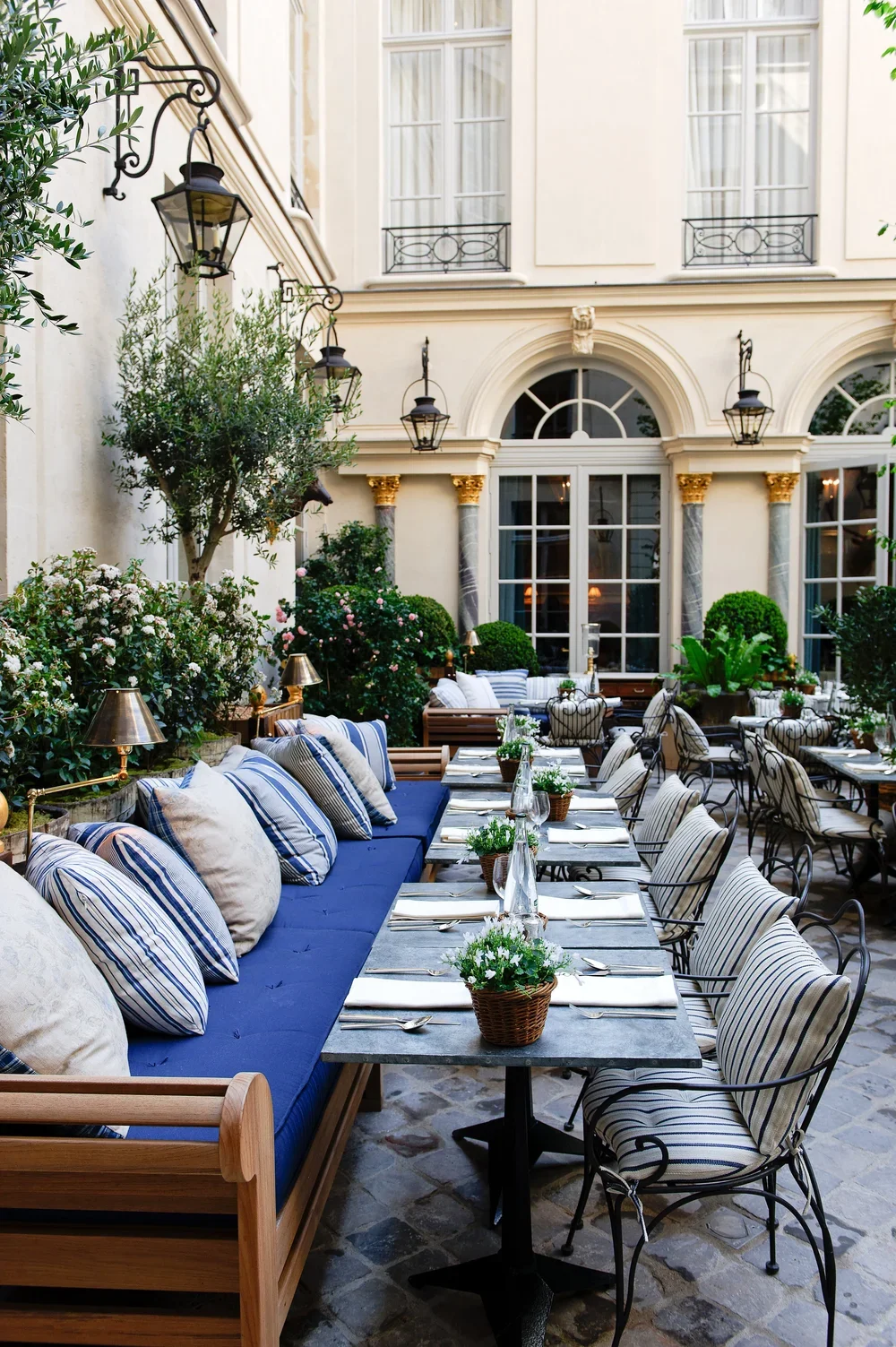 Indoor and terrace dining that translates American ease into a Parisian rhythm: sun-washed, relaxed, timeless.