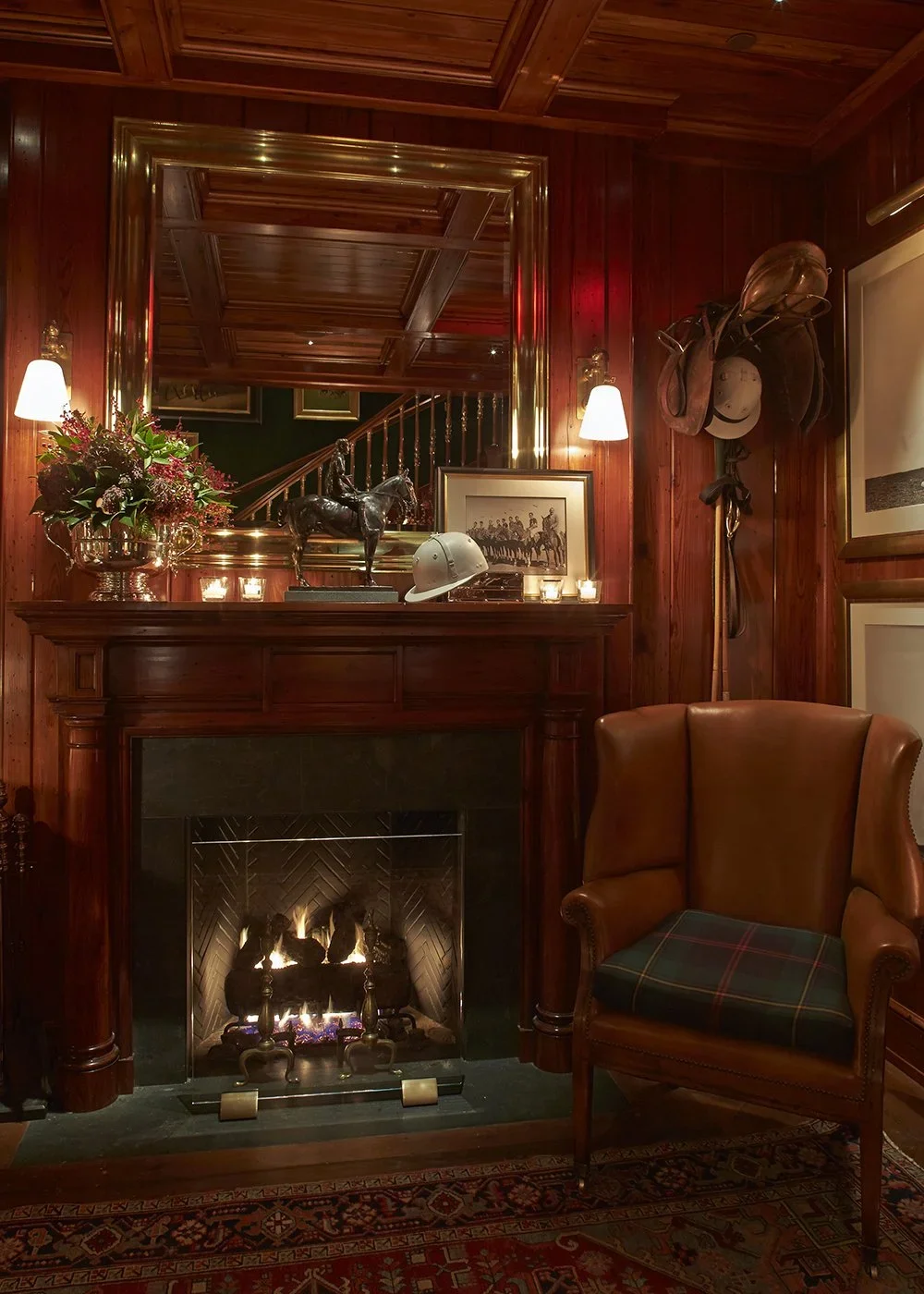Fireplace in the dining room at Polo Bar NYC