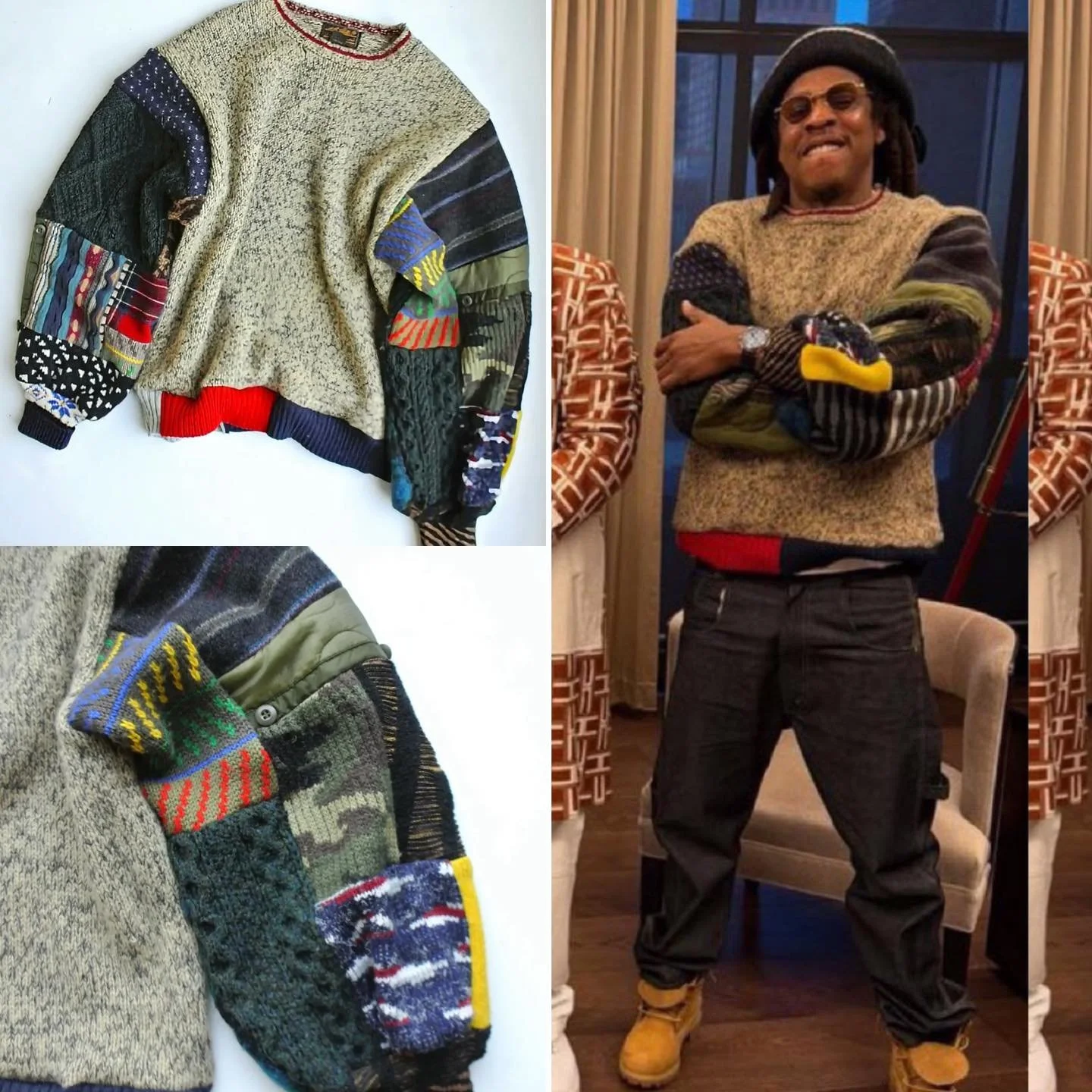 Jay-Z wearing custom sweater by Asaka Fushimi